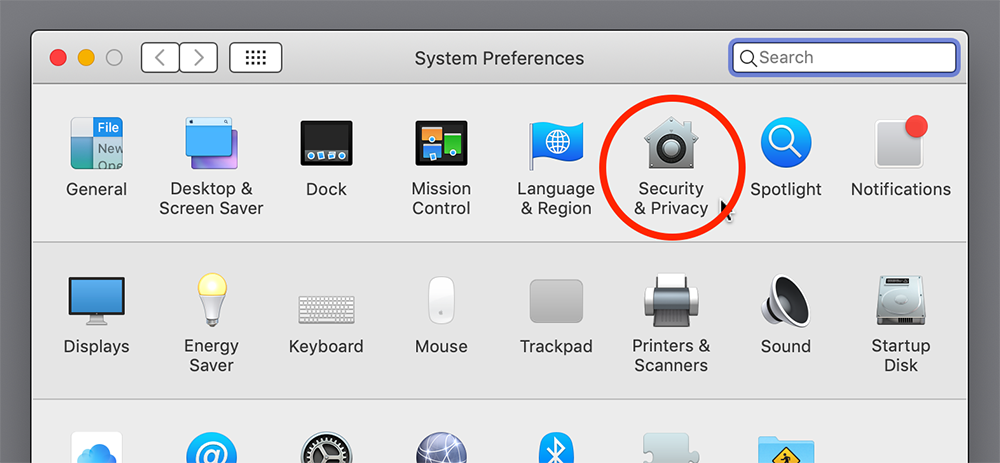 Step 2: Click "Security & Privacy" (3rd from right on the upper row).