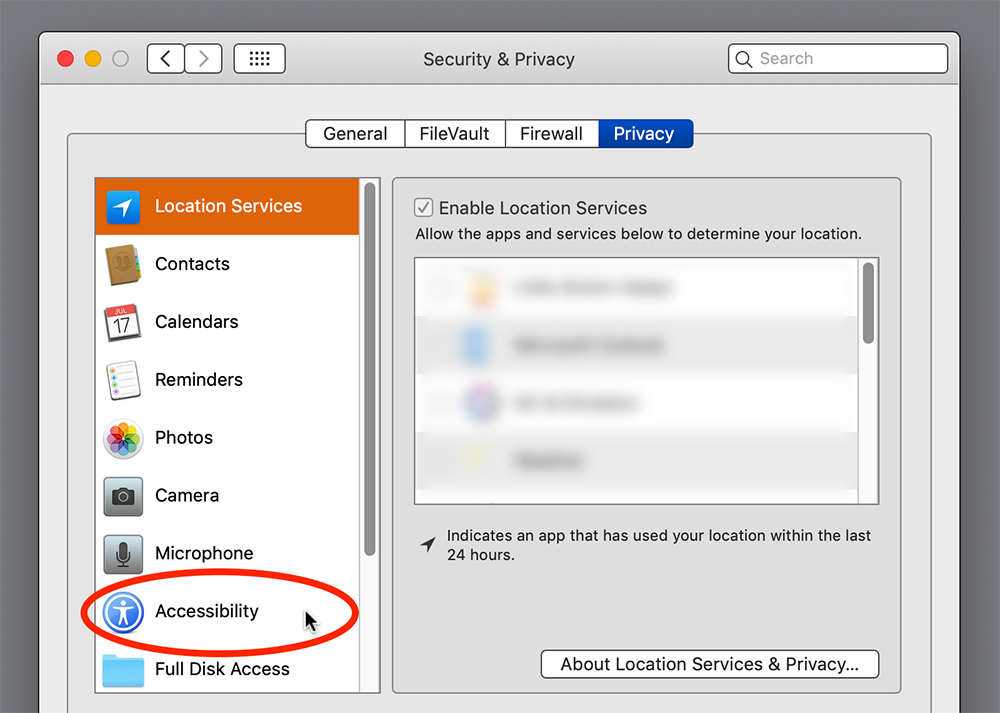 Step 4: Click "Accessibility" on the left-side list. You may have to scroll the list down to see it.