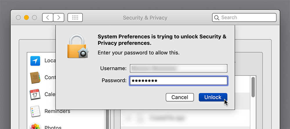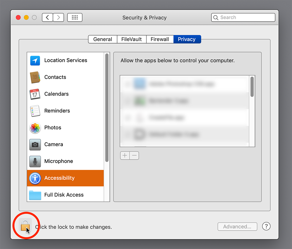 Step 5: Next, you need to authorize yourself to be able to make changes to your Mac's privacy settings. Click the orange lock icon in the bottom-left corner.