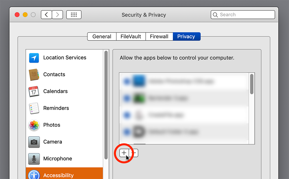 Step 7: Click the plus icon below the list of apps (the list may be empty at this point). This will open a file selection window.
